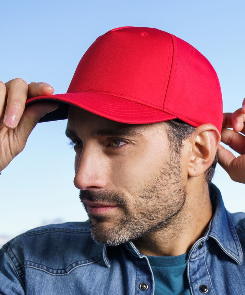 Nálepka na kšiltu, potní pásek s funkcí rychlého schnutí, zapínání na suchý zip s elastickou přední stranou, UV ochrana 50+, štítek TearAway, ruční praní, nelze žehlit, nelze sušit v sušičce, nelze chemicky čistit