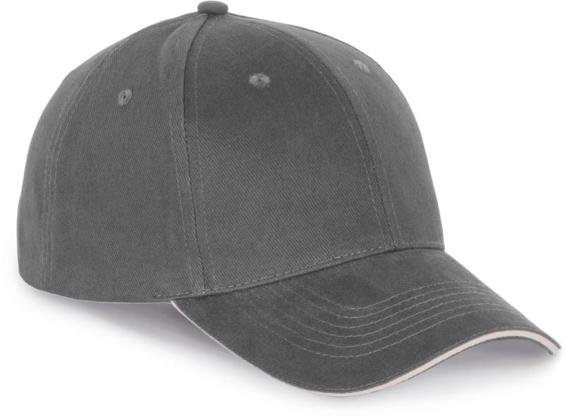 Obnovený udržitelný model Liberty Sandwich-S (artikl: 33.0251), lemování v kontrastní barvě na kšiltu, vyztužená přední část, obšité větrací otvory, látkový pásek s kovovým zapínáním, štítek TearAway, ruční praní, nelze žehlit, nelze sušit v sušičce, nelze chemicky čistit