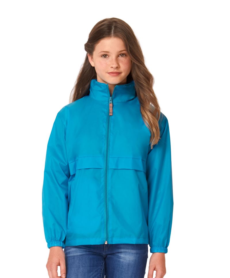 Voděodpudivý, límec s integrovanou kapucí, nastavitelná šňůrka v pase, skrytý zip, složení a uložení bundy do kapsy s dvojitým zipem podle systému K-Way, pratelné na 30°, nelze žehlit, nelze sušit v sušičce