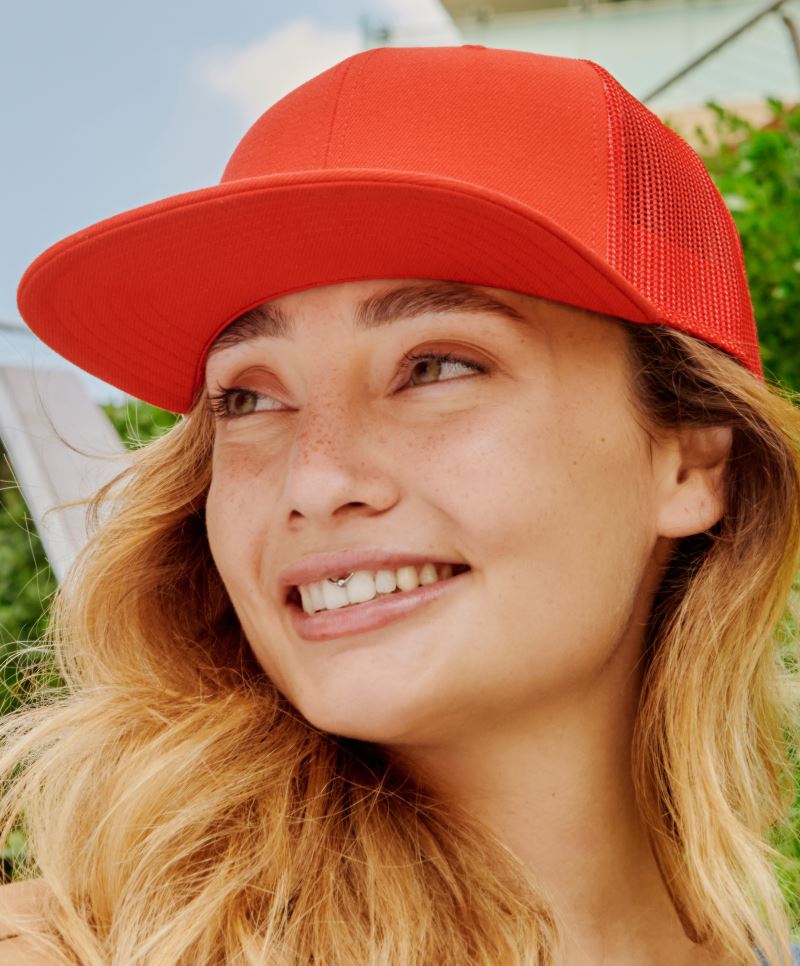 Kšilt a přední panel: 100% polyester twill, boční strany a zadní strana: 100% polyester