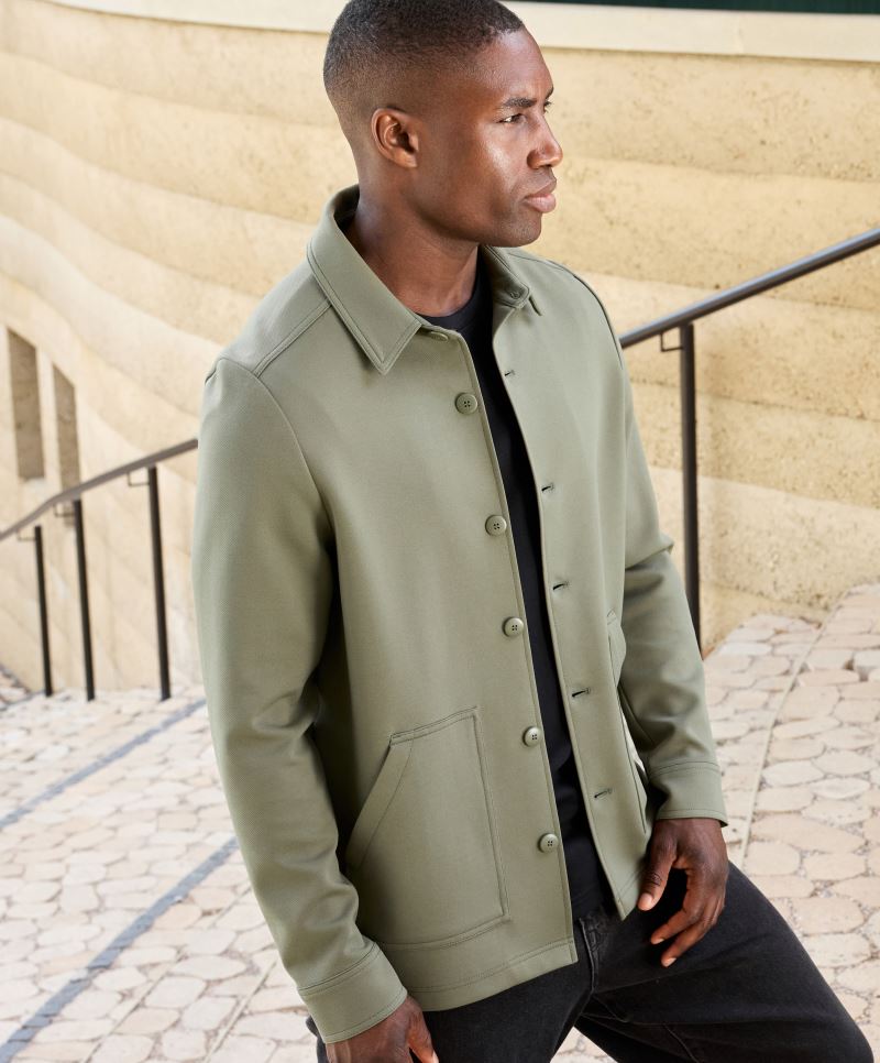 Košilový límec, přesahující ramena, manžety s 1 knoflíkem, 2 boční kapsy, robustní a odolný materiál, neutrální velikostní štítek, pratelné na 30°