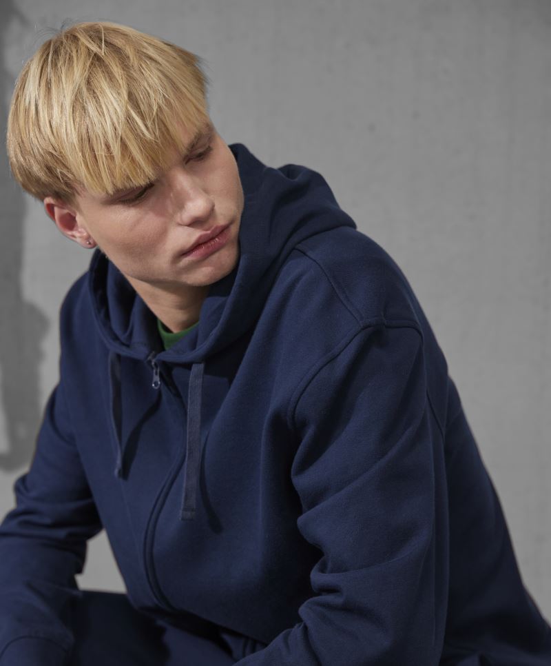 2-vrstvá kapuce se šňůrkou tón v tónu, krční lemovka z jednoduchého žerzeje, žebrované manžety na rukávech a lemu s Lycrou®, skrytý zip pro lepší potisk, 2 našité kapsy, pratelné na 40°, lze sušit v sušičce při nízké teplotě, nelze chemicky čistit