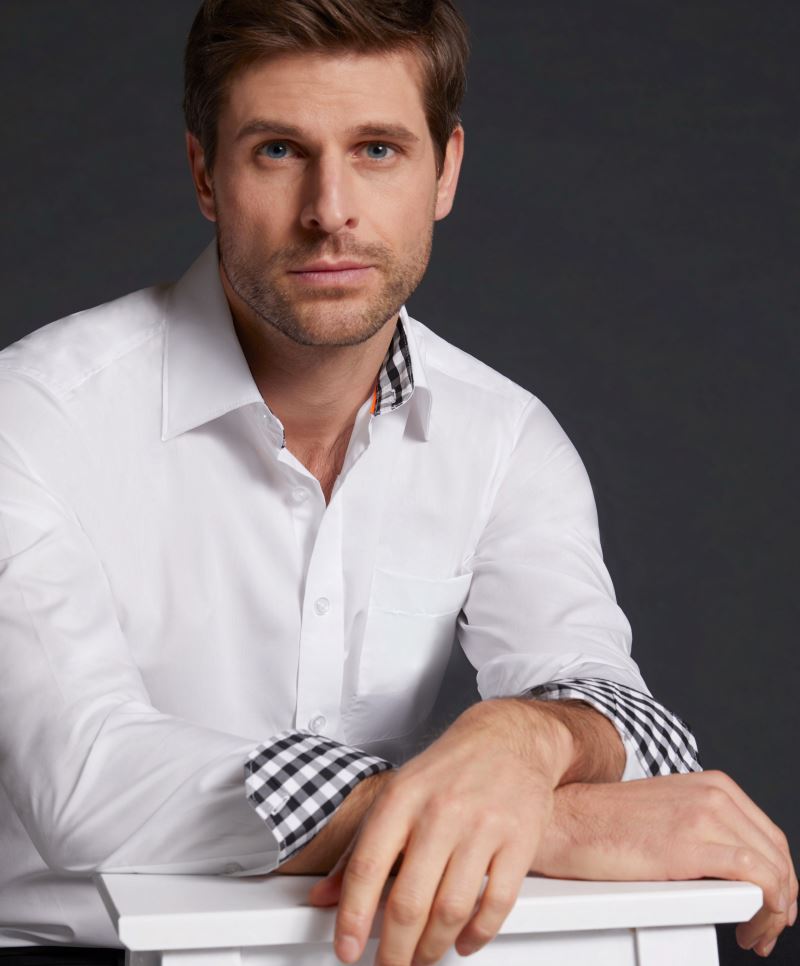 Lehce vypasovaný střih, uni-vložky na límci a manžetě, zaoblený lem, náprsní kapsa 13x15cm, záševky na zadním sedle, Easy Care, pratelné na 40°, šetrné praní, vysoce kvalitní, snadno žehlivý popelín, nelze sušit v sušičce