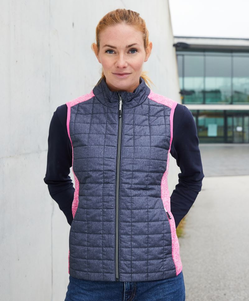 Vypasovaný střih, kapuce s nastavením šířky, celopropínací podšitý zip, 2 boční kapsy se zipem, 2 vnitřní kapsy, ploché švy v kontrastní barvě na rukávech, přední část, zadní část a kapuce v prošívaném károvaném designu, měkký teplý materiál v melanžovém vzhledu, easy care, pratelné na 30°, šetrné praní, nelze žehlit, nelze sušit v sušičce