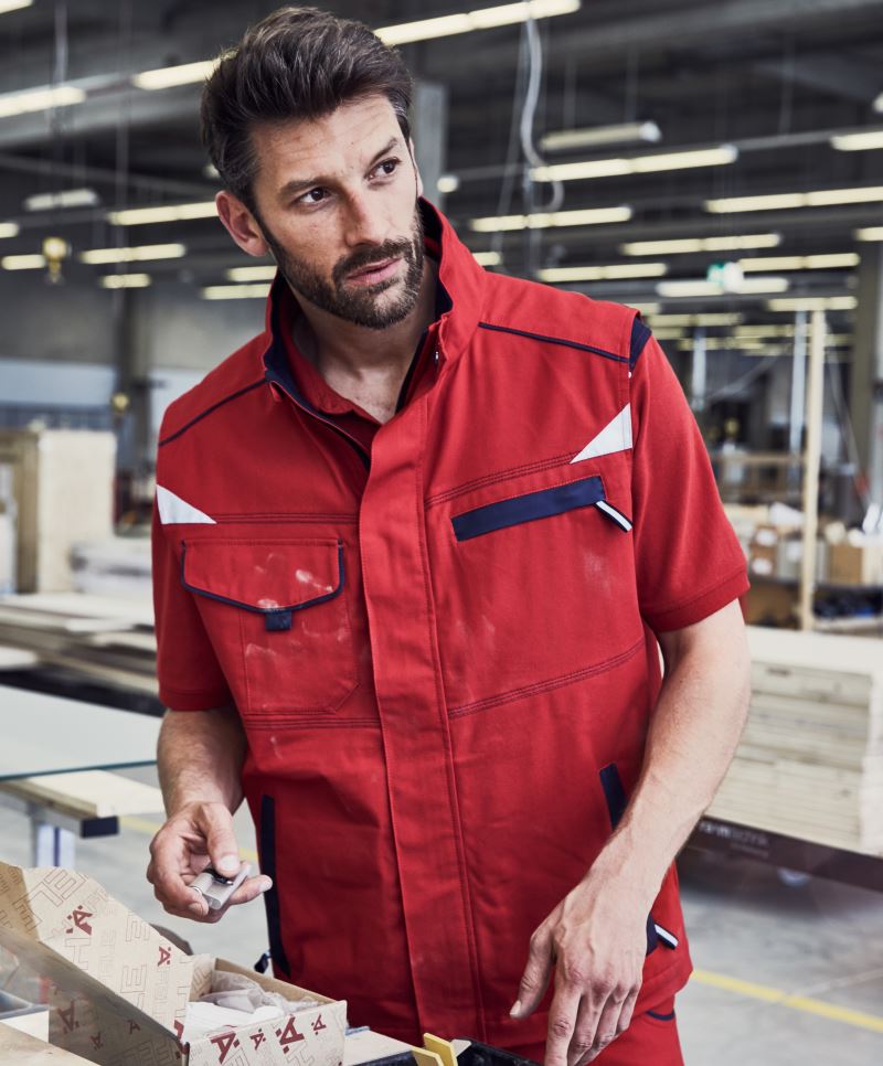 Stojáček s fleecovou vnitřní stranou, oblast ramen zesílená tkaninou Cordura®, plný podšitý zip s větrnou clonou, boční kapsy, náprsní kapsa s klopou, uvnitř kapsa na mobilní telefon, velké větrací otvory na zádech, robustní a odolná směsová tkanina, reflexní prvky (bez ochranné funkce) v přední a zadní části, pratelné na 60°, lze sušit v sušičce při nízké teplotě
