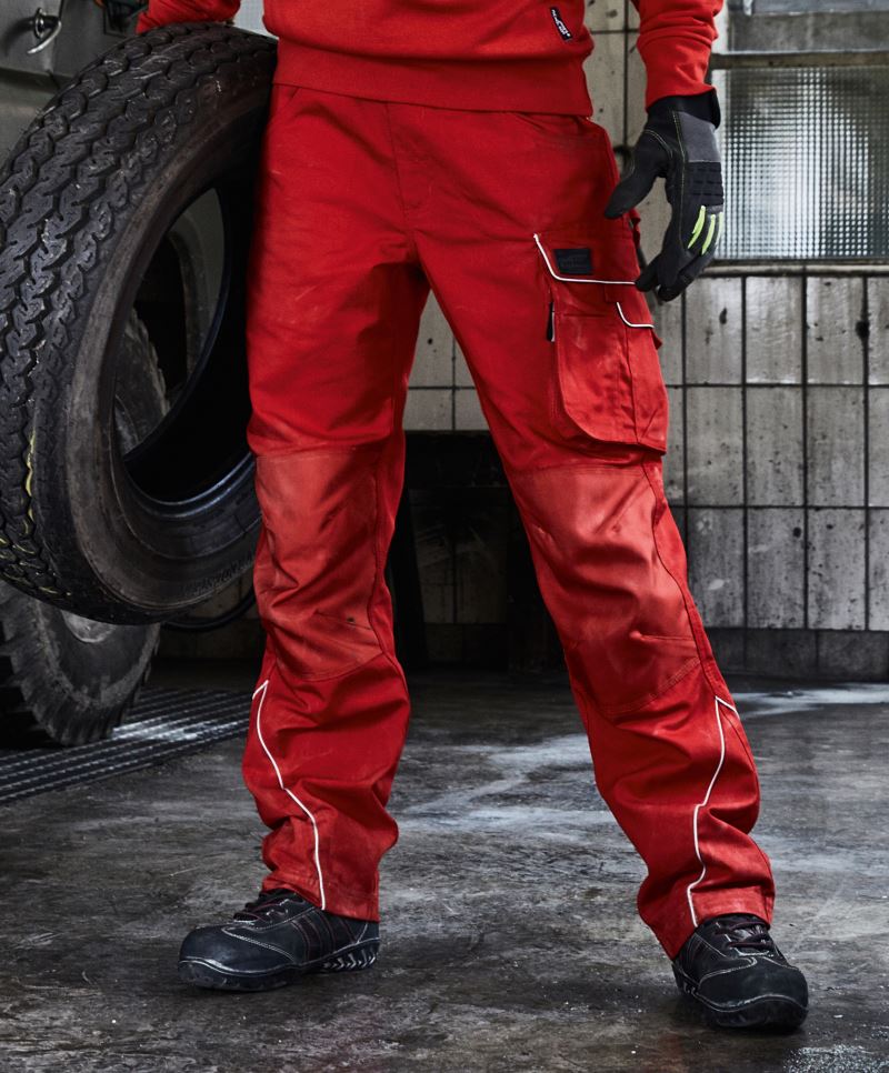 Elastický pas s poutky na opasek, oblast kolen zesílená tkaninou Cordura®, YKK zipy, skryté knoflíky a zipy, zasouvací kapsy, různé kapsy na nářadí, 2 kapsy na zip, kapsa na pravítko a kapsa na pero vyztužené tkaninou Cordura®, kapsa na mobilní telefon, 3-tý šev odolný proti roztržení, robustní a odolná směsová tkanina, reflexní prvky (bez ochranné funkce) na kapsách, přední a zadní straně, pratelné na 60°, lze sušit v sušičce, k dispozici ve 3 délkách, ve webshopu: krátké 02.878S, střední 02.878M/02.878X, dlouhé 02.878L, velikost 62 Art.č. 02.878X