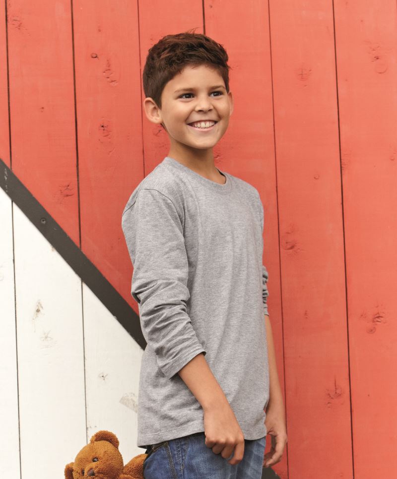 Rovný střih, kulatá pletenina, 1x1 žebrovaná krční manžeta a krční lemovka, pratelné na 40°, nelze sušit v sušičce