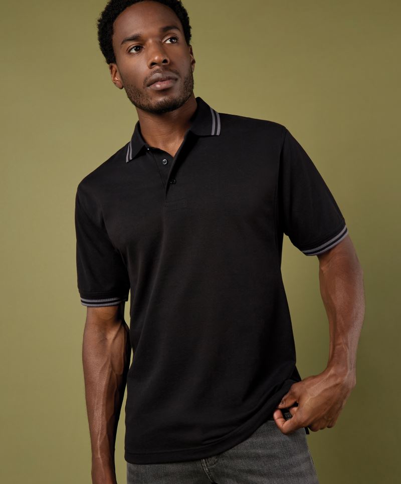 Plochý pletený límec a manžety na rukávech s pruhy v kontrastní barvě, knoflíková léga s 3 knoflíky, zesílené boční rozparky s kontrastním pásem, pratelné na 40°, nelze sušit v sušičce