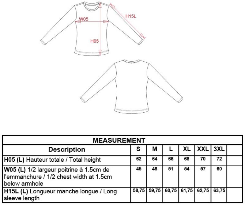 Vypasovaný střih, úzce lemovaný výstřih, šedá krční lemovka u barevných triček a bílá krční lemovka u bílých triček, dvojité švy, pratelné na 40°, lze sušit v sušičce při nízké teplotě, nelze chemicky čistit