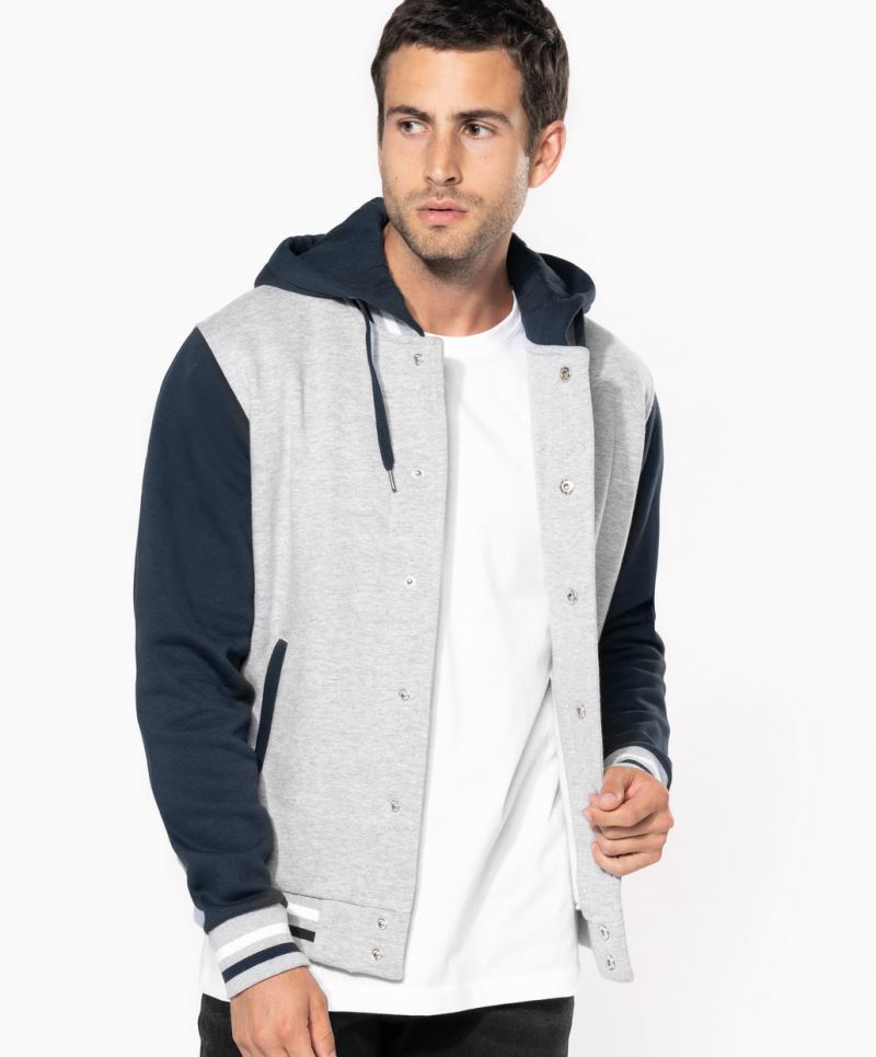 Keprová krční lemovka, vsazené rukávy v kontrastní barvě, patentky v kontrastní barvě, 2 boční kapsy s lemováním v kontrastní barvě, pruh v kontrastní barvě na límci, rukávech a manžetách v žebrovaném úpletu, závěsné poutko, 3-vláknový kartáčovaný fleece, neutrální velikostní štítek, pratelné na 30°, nelze sušit v sušičce, nelze chemicky čistit