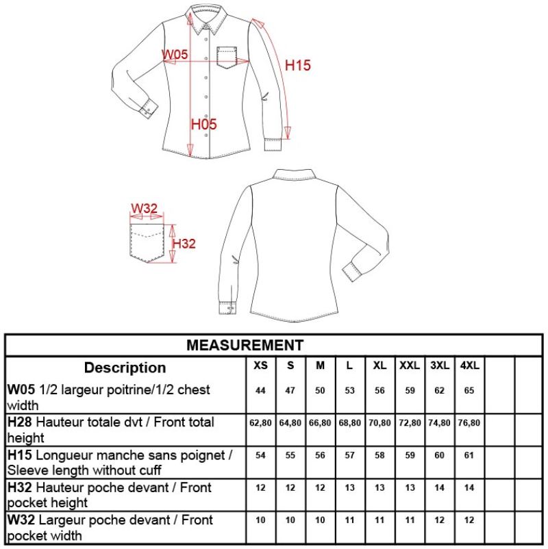 Klasický límec bez knoflíků, zaoblené manžety nastavitelné pomocí 2 knoflíků, zaoblený lem, knoflíky tón v tónu, 1 náhradní knoflík, levá náprsní kapsa, tkanina pro snadnou údržbu, pratelné na 40°, nelze sušit v sušičce
