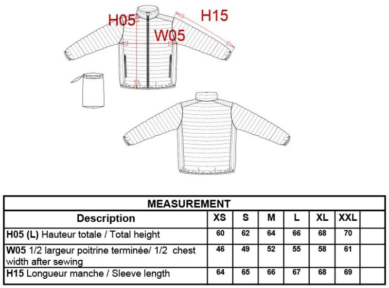 Stojáček s ochranou brady, elastické manžety na rukávech a spodním lemu, 2 boční kapsy se zipem, boční vsadky s podélným prošíváním, vnitřní strana v kontrastní barvě, tkanina pro snadnou údržbu, lehká a teplá, odolná, pružná tkanina, lze složit do vaku, pratelné na 40°, nelze sušit v sušičce, nelze chemicky čistit
