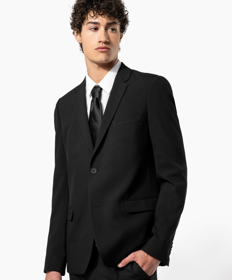 Manžety se 4 knoflíky, z nichž jeden má knoflíkovou dírku v kontrastní barvě, se 2 knoflíky, 2 vnitřní kapsy s knoflíkem, 2 boční kapsy s lemováním a klopou, 1 kapsa na mobilní telefon, 1 náprsní kapsa, 2 rozparky na zádech, vnitřní strana v kontrastní barvě, přístup k zušlechtění na levé straně, chemické čištění, nesmí se prát, nelze sušit v sušičce