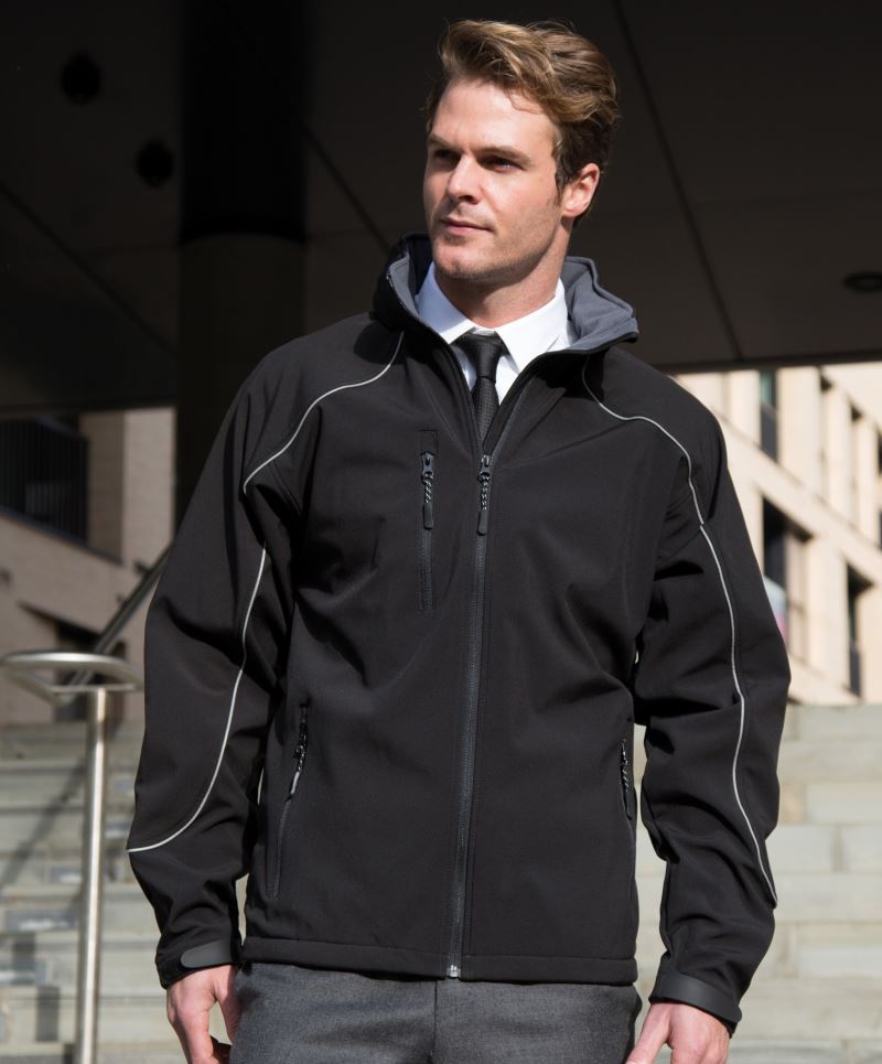 3-vrstvý materiál, voděodolné (8.000mm vodní sloupec), prodyšné (3.000g/m² za 24h), odnímatelná kapuce se stahovací šňůrkou, nastavitelné manžety se suchým zipem, 2 vnitřní kapsy s knoflíkem, kapsa na rukávu se zipem, 2 boční kapsy a 1 náprsní kapsa se zipem, prošívaná podšívka s fleecem, přístup k zušlechtění na zádech a levém prsu, pratelné na 40°, nelze žehlit, nelze sušit v sušičce, nelze chemicky čistit