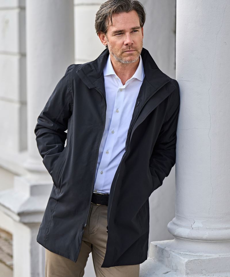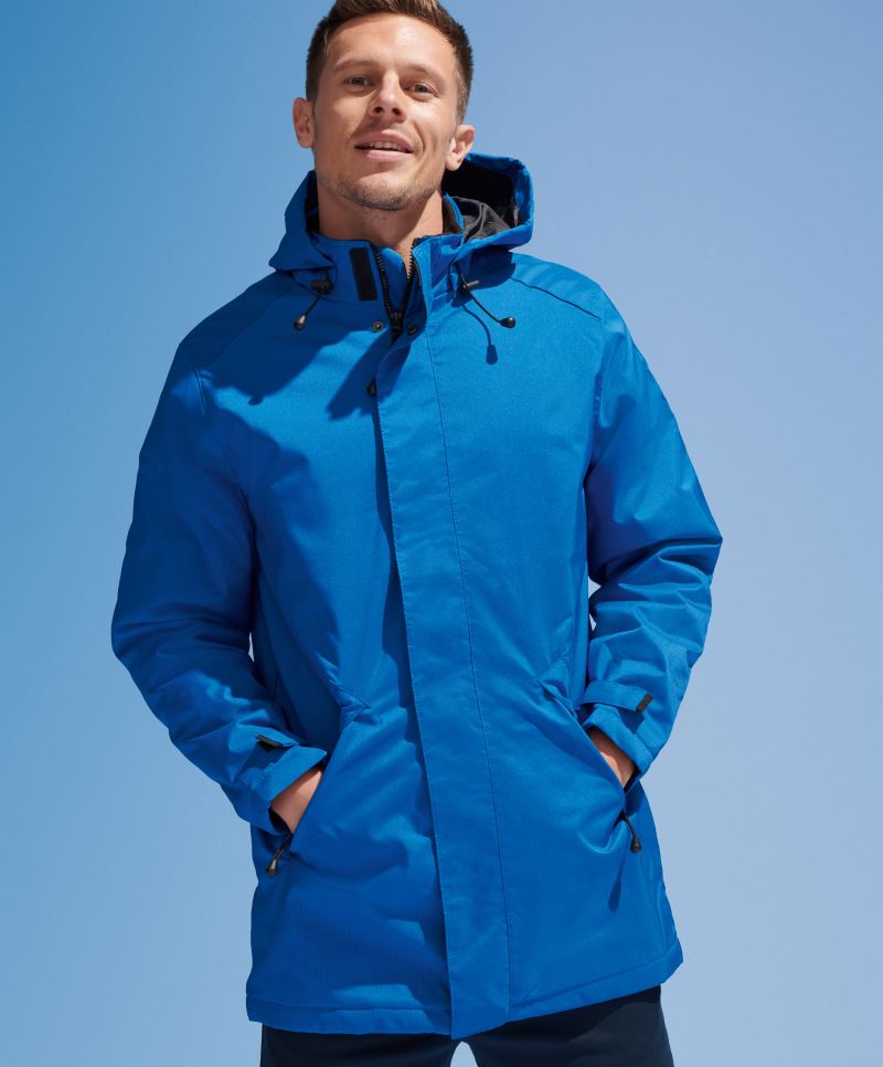 Stojáček s polyesterovou fleecovou podšívkou a integrovanou kapucí, suché zipy na manžetách, 2 vnější kapsy na zip a klopu, uvnitř kapsa na mobilní telefon, přístup k zušlechtění v podšívce, pratelné na 40°, nelze sušit v sušičce