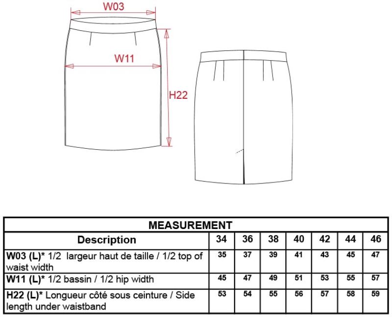 Rozparek a skrytý zip vzadu, strečová podšívka pro větší pohodlí, francouzské velikosti: prosím převeďte podle velikostní tabulky, pratelné na 40°, chemické čištění, šetrné praní, nelze sušit v sušičce