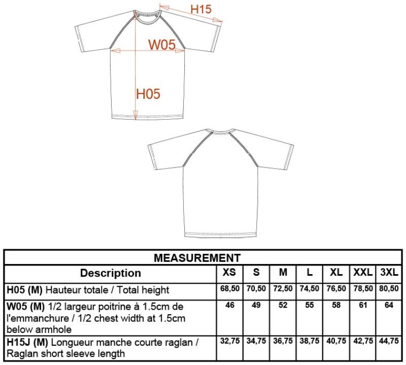 Vylepšený kulatý výstřih s krční lemovkou, raglánový rukáv se skrytými švy, rychleschnoucí, pratelné na 40°, nelze sušit v sušičce, nelze chemicky čistit