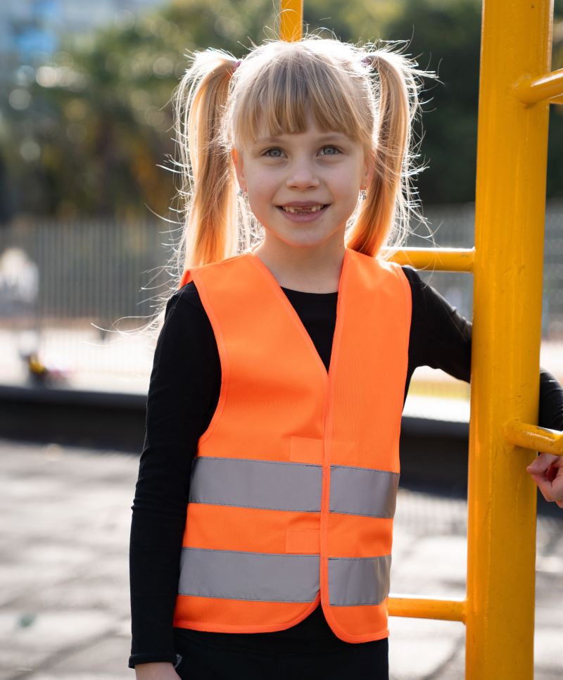 Zip, hi-vis yellow, hi-vis orange, hi-vis yellow/hi-vis orange, neon green, certifikováno podle EN 17353 2020 Type AB3, red certifikováno podle EN 17353 2020 Type B3, dva reflexní pruhy široké 5 cm kolem těla, XXS 3-4 roky, XS 4-6 let, S 7-12 let
