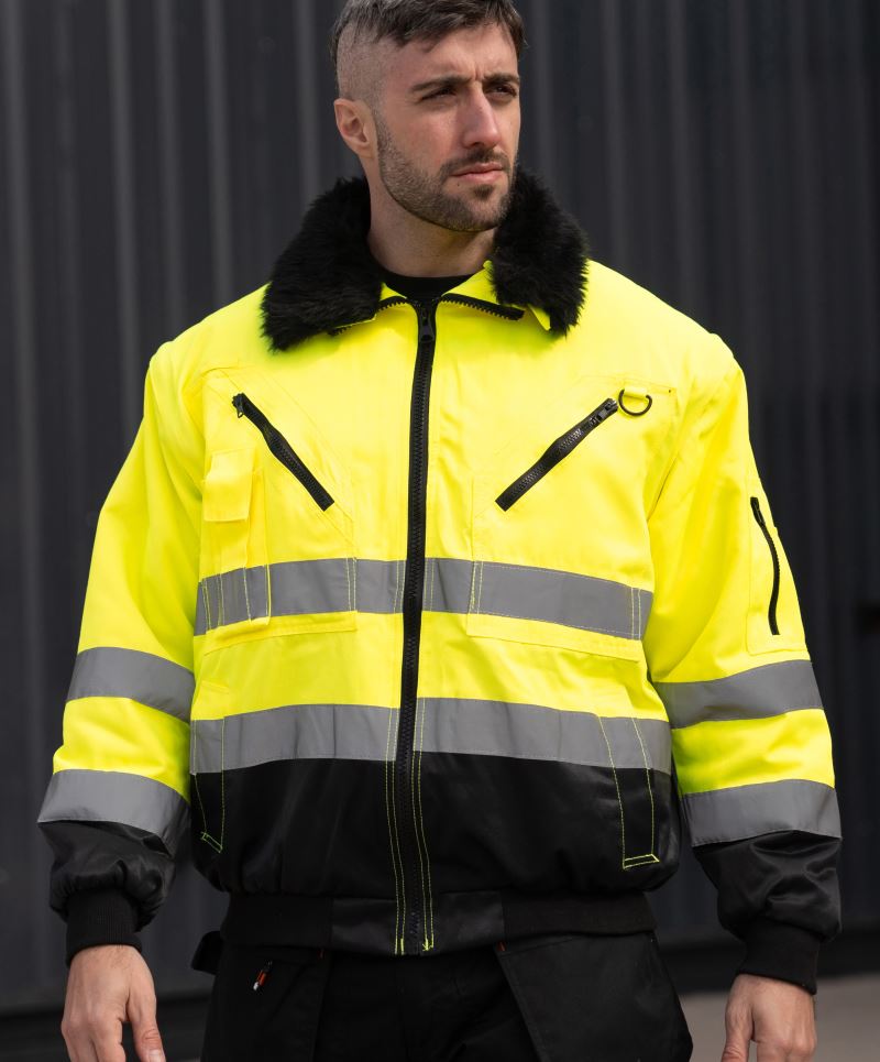 Kapuce v límci, vnitřní manžeta na rukávu, zip s klopou proti větru po celé délce, 2 skryté kapsy s bočním vstupem a zipem, náprsní kapsa se suchým zipem, přístup k zušlechtění v podšívce, oranžová barva odpovídá také GO/RT 3279, certifikováno podle EN ISO 20471 třída 3 a EN 343