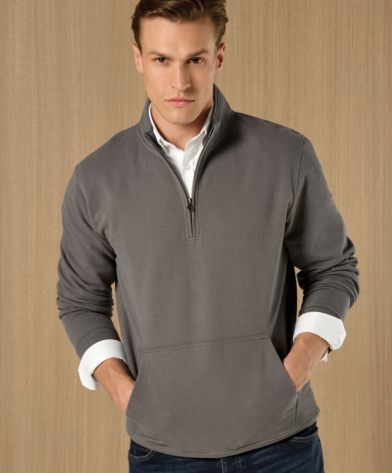 Podšitá kapuce s plochou šňůrkou s kovovými očky tón v tónu, krční lemovka, dvouvrstvý materiál na manžetách a lemech, našitá klokaní kapsa se zipem, dvojité švy na průramcích, rukávech a v pase, piqué úplet, štítek Tear Away, pratelné na 30°, nelze sušit v sušičce