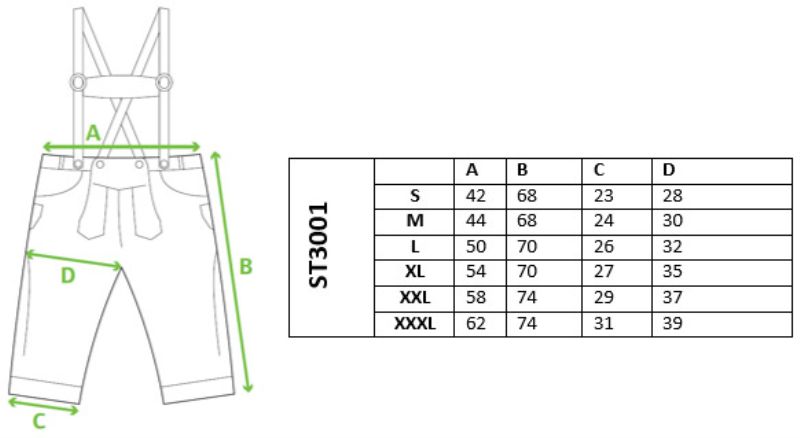 Dámské kožené kalhoty s tradiční 3/4 délkou, včetně ramínek a náprsníku, výšivky na bocích a vpředu