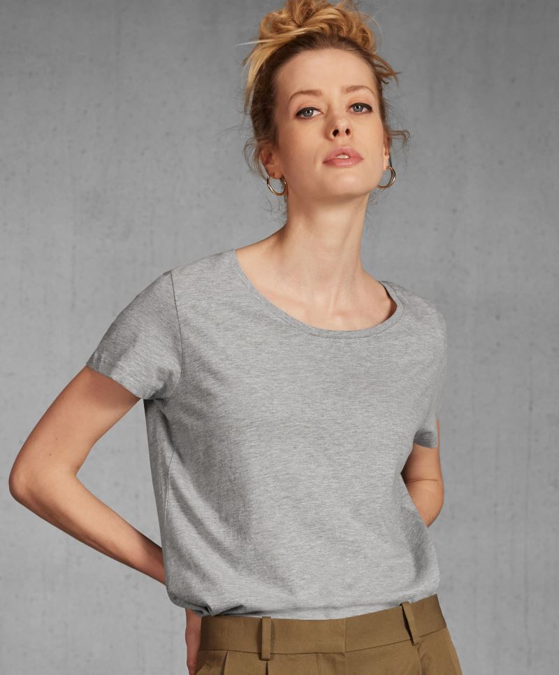 Vypasovaný střih, výstřih z žebrovaného úpletu s elastanem, krční lemovka, EU Ecolabel, SA 8000, neutrální velikostní štítek, pratelné na 60°, lze sušit v sušičce při nízké teplotě, doporučeno prát na 40°