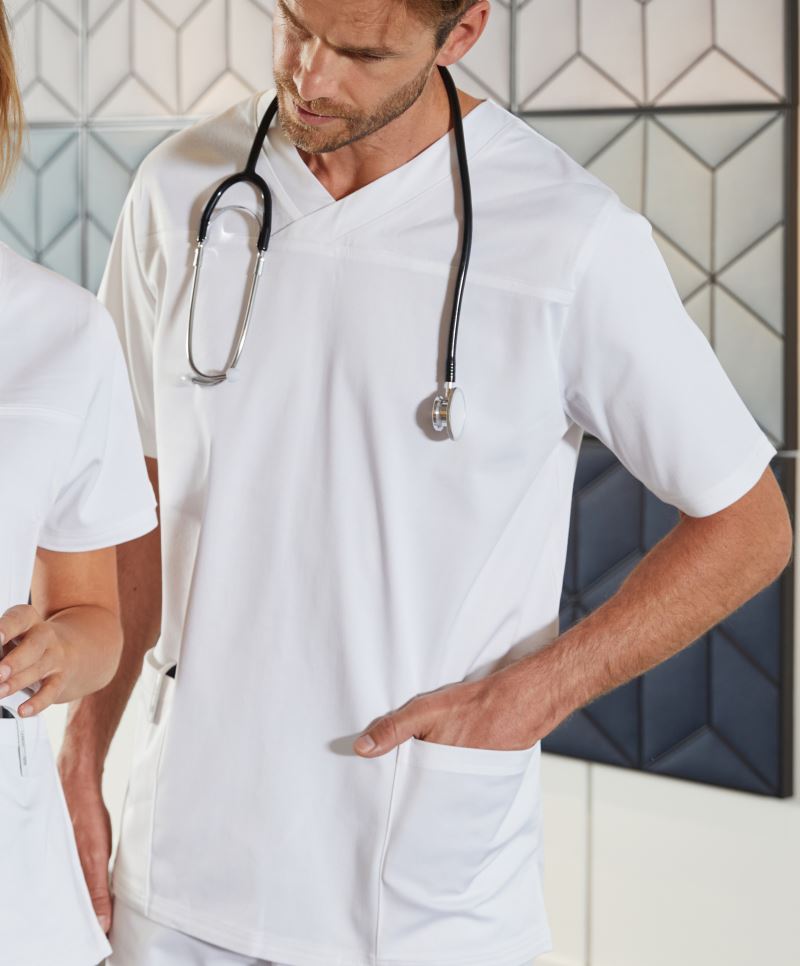Prodyšný materiál, výstřih do V, levá náprsní kapsa, boční rozparky, záševky na zádech, 4-cestný strečový materiál, odolný materiál, nemačkavé, easy care, regulující vlhkost, lze sušit v sušičce při nízké teplotě, nelze chemicky čistit