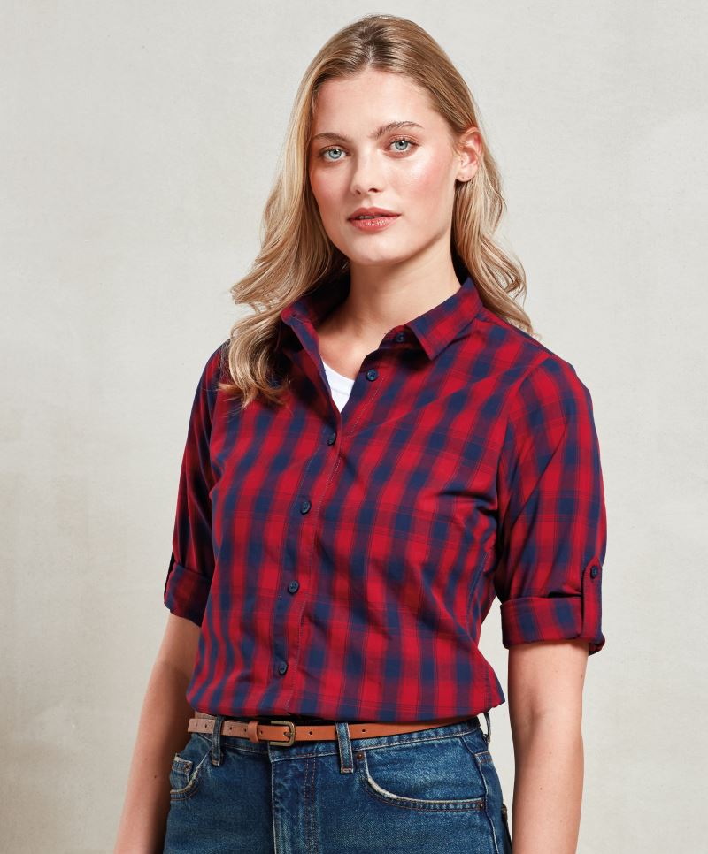 Lehce vypasovaný střih, úzká lemovka, vyhrnovací rukávy s knoflíkem a poutkem pro uchycení, manžety s knoflíky, kostkovaný design, pratelné na 40°, nelze sušit v sušičce