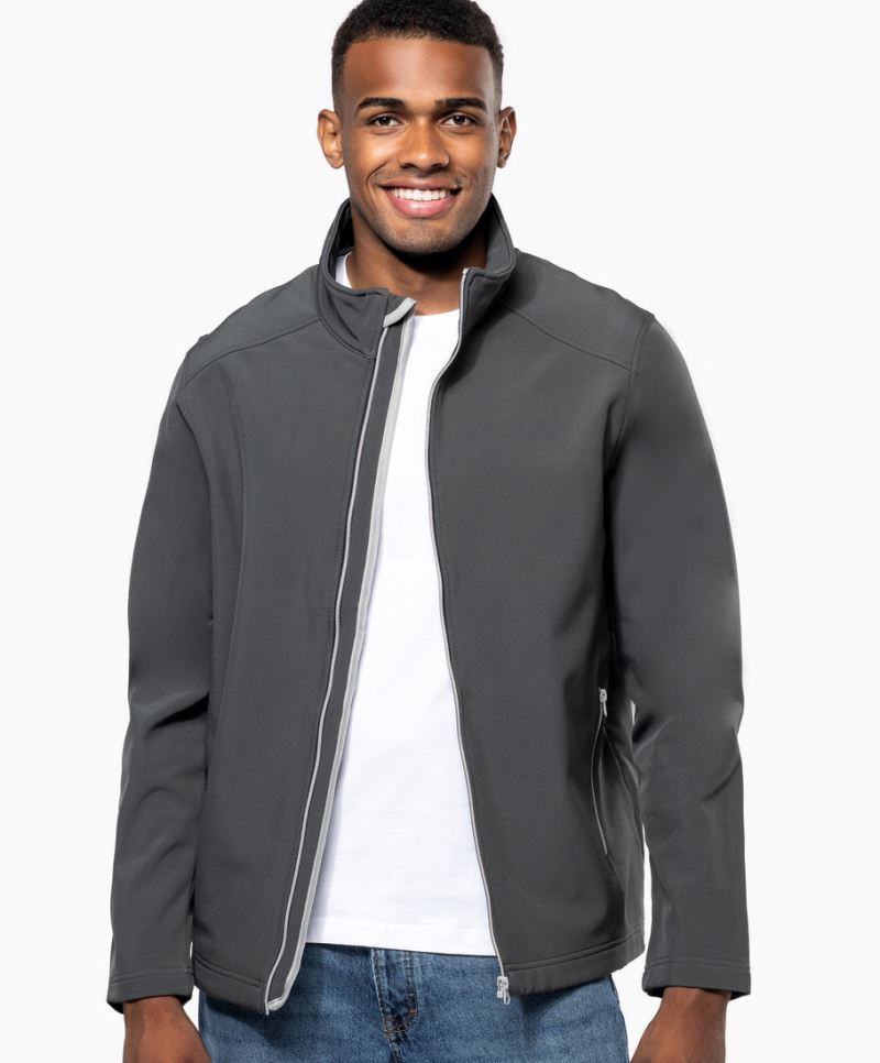 Spojení softshell/single jersey, voděodolné (8.000mm vodní sloupec), vodotěsné zipy, prodyšný materiál, kapuce, ochrana brady, 2 boční kapsy se zipem, podlepené švy, dělící švy, prodloužená záda se zaobleným lemem, našitý přívěšek na klíče v boční kapse, bi-elastická, lehký materiál, materiál odolný proti větru, reflexní lemování a přívesek na zip, neutrální velikostní štítek, pratelné na 30°, nelze žehlit, nelze sušit v sušičce, nelze chemicky čistit