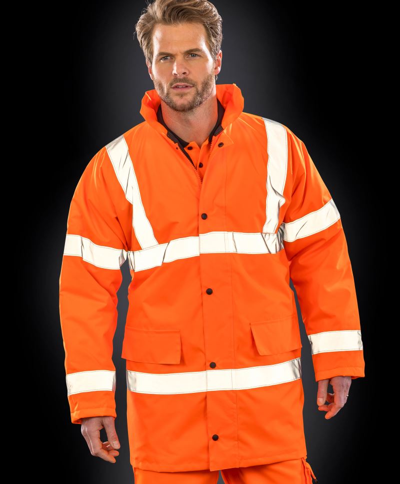 Voděodolná, 1.000mm vodní sloupec, skrytá kapuce v límci, elastický lem, větrná klopa na zipu, 2 vnější kapsy, 1 vnitřní kapsa, podlepené švy, přístup k zušlechtění na lemu, robustní a odolný materiál, materiál odolný proti větru, třída 3 certifikováno, certifikováno podle EN 343:2019 3:1, 50mm široký našitý reflexní pásek, pratelné na 40°, nelze žehlit, nelze sušit v sušičce
