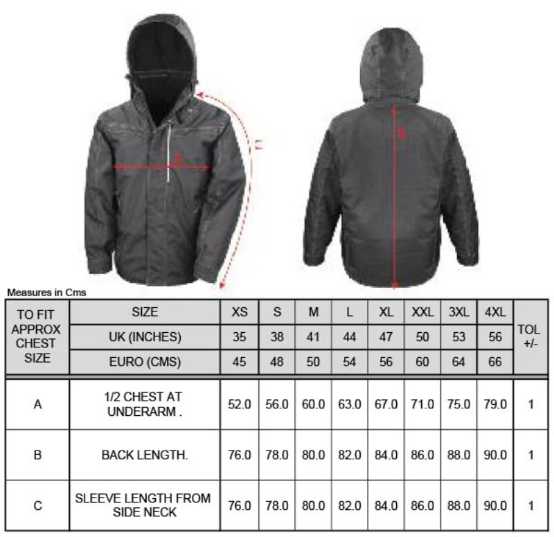 3.000mm vodní sloupec, prodyšné (2.000g/m² za 24h), větruodolná, vysoký stojatý límec podšitý fleecem s odnímatelnou kapucí, nastavitelný lem, větrná klopa s patentkami, 2-cestný zip, 4 vnější kapsy, podlepené švy, prodloužená záda, prošívaná podšívka s fleecem, přístup k zušlechtění na zádech a levém prsu, reflexní detail (bez ochranné funkce), neutrální velikostní štítek, pratelné na 40°, šetrné praní, nelze žehlit, nelze sušit v sušičce
