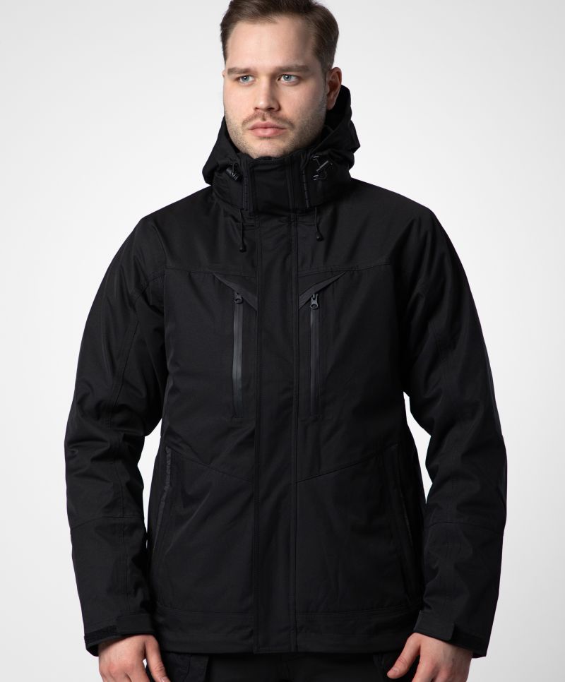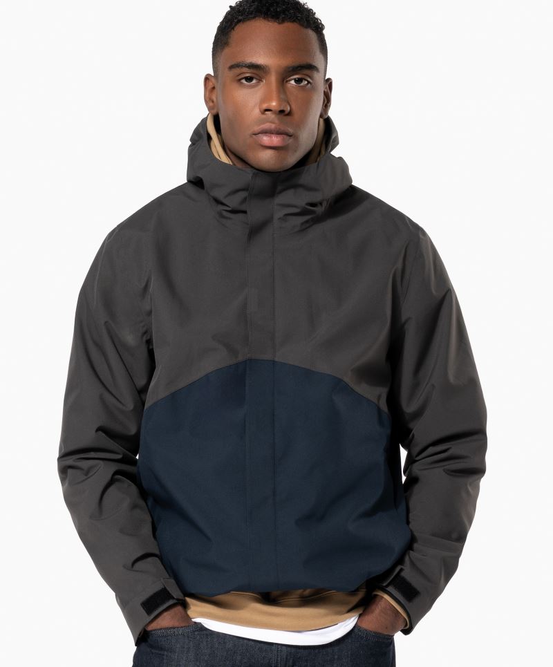 Voděodolná (3.000mm vodní sloupec), prodyšná (1.000g/m² za 24h), odnímatelná nastavitelná kapuce, nastavitelné manžety se suchým zipem, voděodolný zip, ochranná klopa proti větru s patentkami, 2 našité kapsy se zapínáním na druky a bočním zipem, podlepené švy, zip uvnitř k připevnění vnitřní bundy, přístup k zušlechtění na zádech a levém prsu, větrací otvory v oblasti předloktí, poutko, nemačkavé, materiál odolný proti větru, vnitřní bunda: elastické manžety na rukávech a spodním lemu, celopropínací zip, 2 boční kapsy se zipem, prošívaný vzhled, poutko, neutrální velikostní štítek, pratelné na 30°, nelze žehlit, nelze sušit v sušičce, nelze chemicky čistit