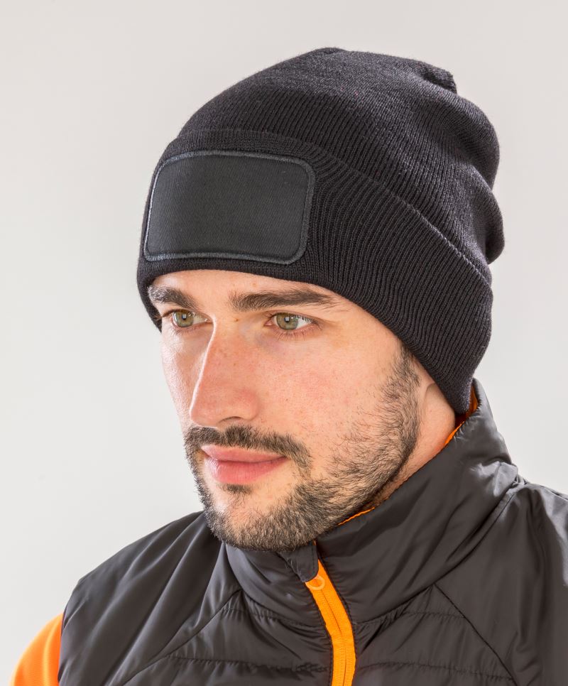 Široký lem, dvojitě pletená, hrubý pletený vzhled, nášivka z bavlněného kepru pro snadnou aplikaci zušlechtění, oblast pro zušlechtění 10x5cm, univerzální velikost: 21x21,5cm, pratelné na 40°, šetrné praní, vytáhněte za mokra do tvaru, nelze žehlit, nelze sušit v sušičce, nelze chemicky čistit