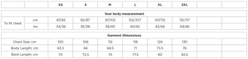 Voděodolné (5.000mm vodní sloupec), prodyšné (5.000g/m² za 24h), předtvarované lokty, svařované, laserem řezané kapsy, svařovaná hydrofobní membrána, povrch materiálu s perleťovým efektem, maximální regulace vlhkosti a teploty, materiál odolný proti větru, pratelné na 30°, šetrné praní, lze sušit v sušičce při nízké teplotě, nepoužívejte aviváž