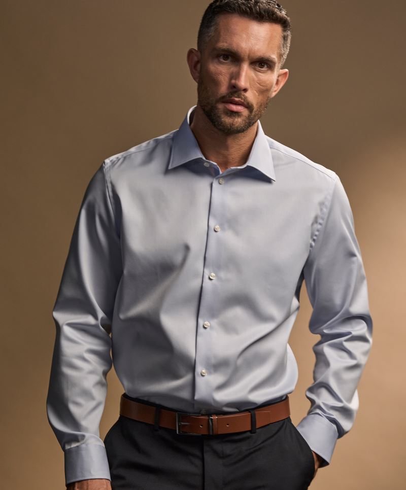 Klasický střih, částečně rozšířený button-down límeček, zkosené manžety, lze nosit s manžetovými knoflíčky, knoflíky tón v tónu, náhradní knoflíky, levá náprsní kapsa, zadní sedlo s protizáhybem, inovativní tkanina, která udržuje košili po celý den svěží a drží tvar, nežehlivé, pratelné na 40°, lze sušit v sušičce