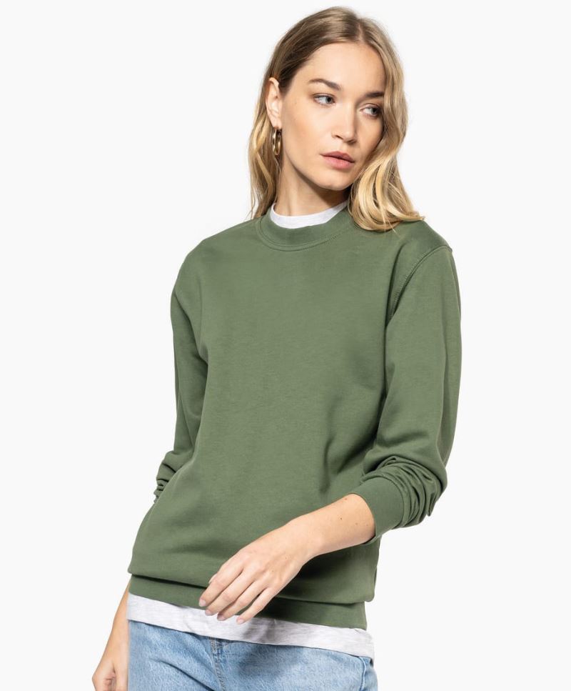 Volnější střih, krční lemovka, přesahující ramena, žebrované manžety na výstřihu, rukávech a lemu, žebrované boční vsadky, uvnitř počesaná, štítek Tear Away, neutrální velikostní štítek, pratelné na 40°, nelze sušit v sušičce, nelze chemicky čistit