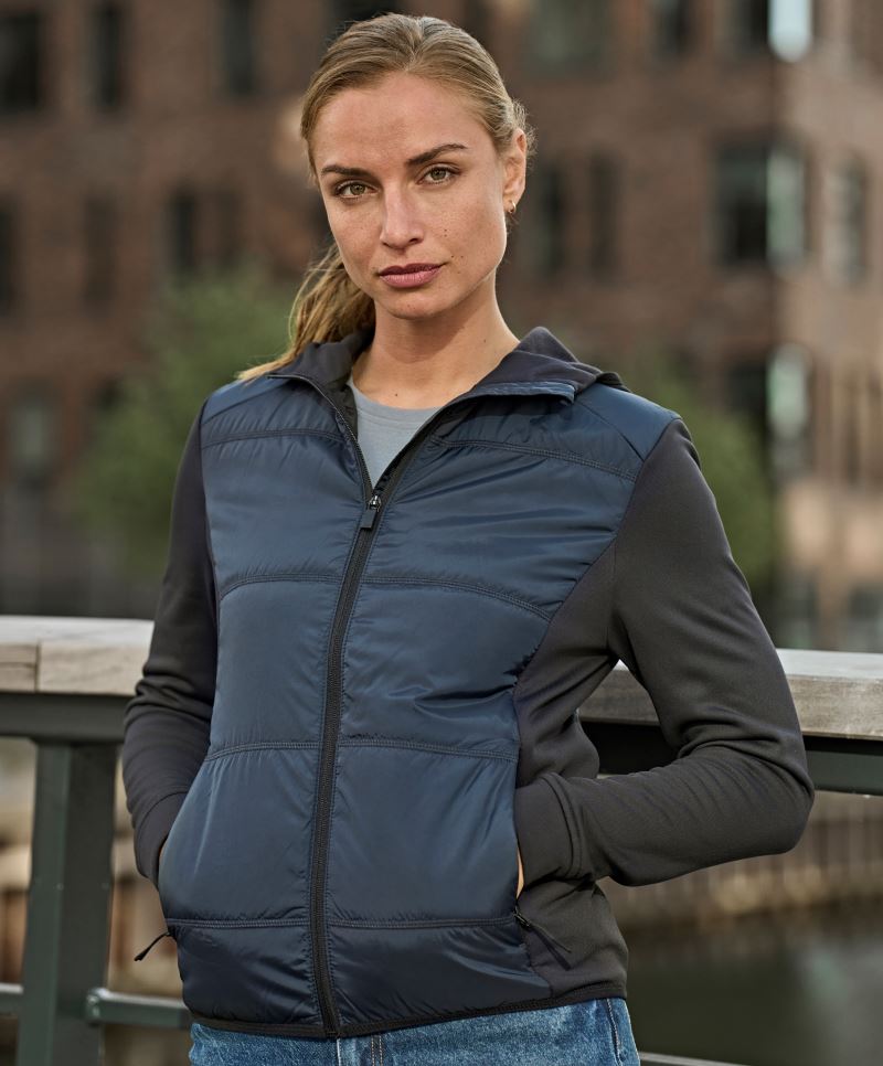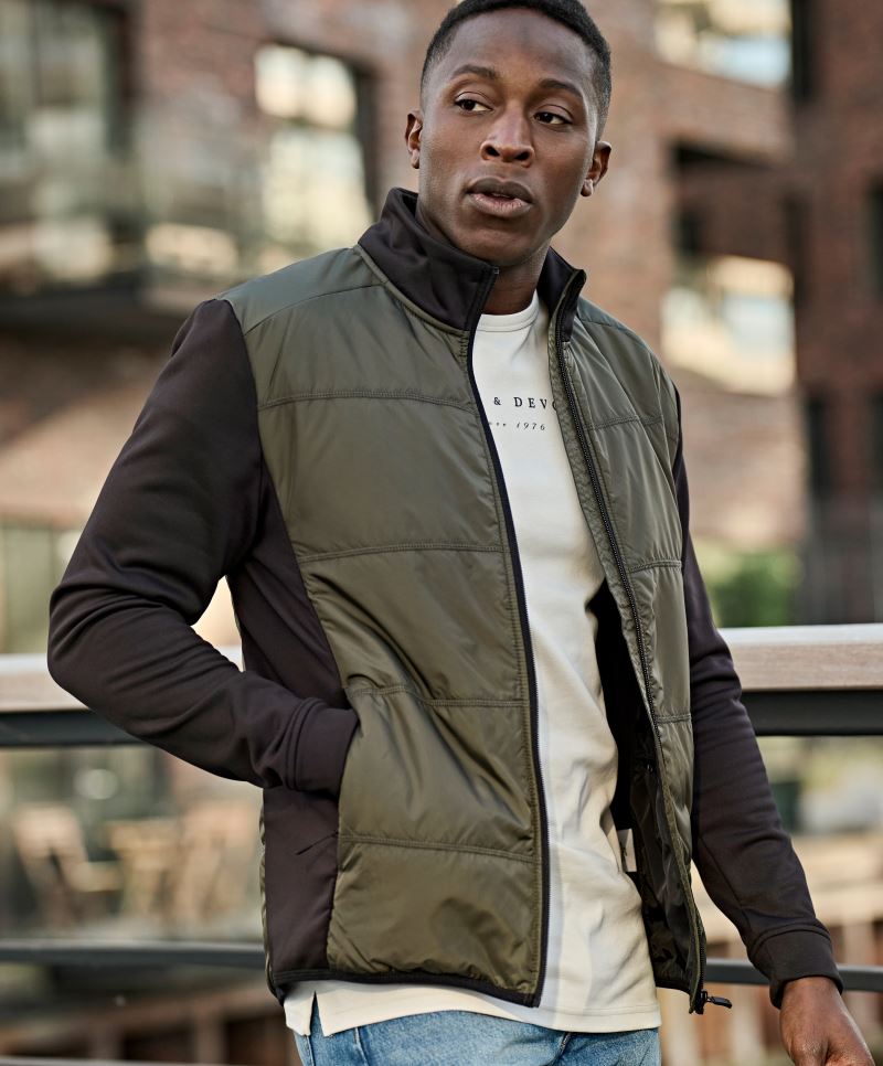 Vnější strana: 100% recyklovaný polyester 300T, podšívka: 100% recyklovaný polyester 380T, výplň DuPont™ Sorona® Aura, vsadky: 90% recyklovaný polyester, 10% elastan
