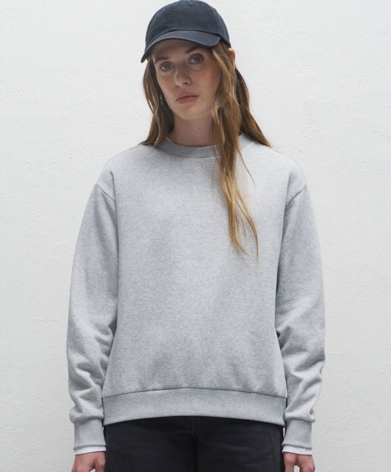 Klasický střih, kulatý výstřih, půlměsícová podsádka na krku, krční lemovka, 2x2 žebrované manžety na výstřihu, rukávech a lemu, řetězový steh v ramenním švu, měkké na omak, uvnitř počesaná, neutrální velikostní štítek, nelze sušit v sušičce, nelze chemicky čistit